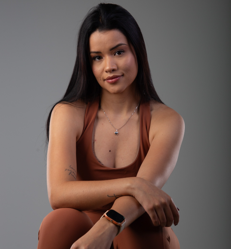 Minha experiência vem de anos em sala de musculação e de dois anos atuando em uma clínica de fisioterapia pélvica, onde aprendi sobre alívio de dores, fortalecimento do assoalho pélvico e cuidados com a diástase. Atuo como personal trainer há mais de 6 anos, com foco em mulheres que desejam mudar de dentro pra fora.